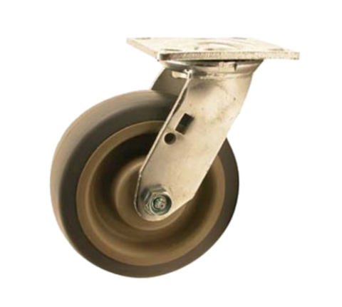 Caster, plate, heavy duty, 2"W, 6" dia., Ball Bearing, swivel, non-marking plastic wheel with gray polyurethane tire