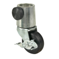 Caster, 2", swivel with brake, for use on 1" OD tubing, 87 lb. capacity, steel boot with urethane wheel