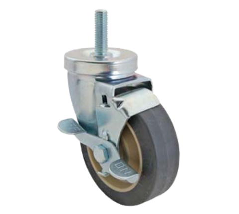 Caster, 4", swivel with brake, 1-1/2" stem, 1/2-13 thread, 165 lb. capacity, rubber wheel