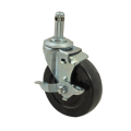 Caster, 3", swivel with brake, grip ring stem, 110 lb. capacity, rubber wheel