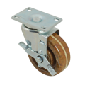 Caster, swivel plate, medium duty, 4", HI-Temp rated to 475° F, 1400 lb. load capacity per set of 4, brown phenolic wheel & hub, with brake