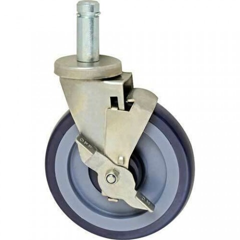 Caster, 6"OD, swivel stem, with brake, 1,200 lb. load capacity per set of 4, purple plastic hub, black polyurethane wheel, stainless steel wheel bracket (for shelving)