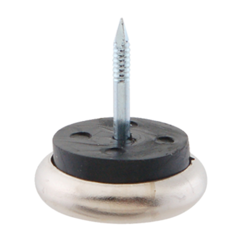 Glide, 1-1/2" base dia., metal with rubber cushion, nail on for wooden furniture