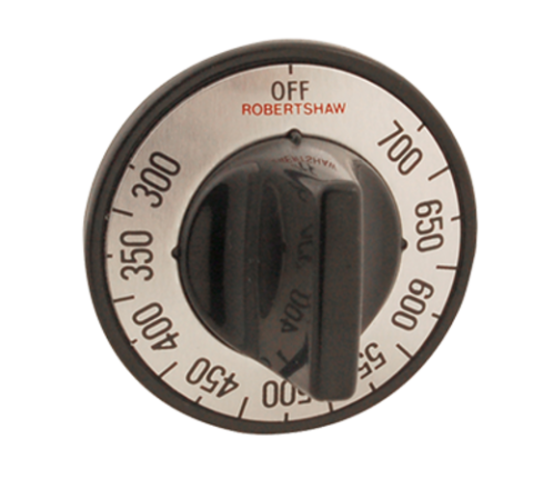 Electric Thermostat Dial, 300° to 700° F temperature range, standard-duty, fits standard .187 dia. D-stem, universal four-way mounting positions