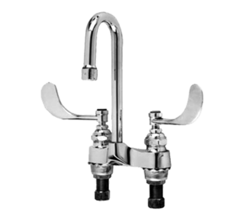 Faucet, lavatory, deck mount, 4" centers, 10" rigid gooseneck spout, 2-3/4" spread, 2-1/4" shanks, 4" wrist blades, 2.2 gpm, 1/2" adaptor nuts, chrome-plated brass, lead free