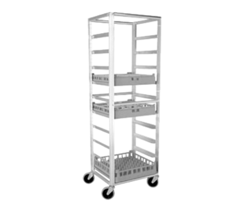Glass/Tray Rack Cart, 23" x 20" x 69" H, (10) 20" x 20" dishwasher rack capacity, (20) adjustable runners, 5" TPR casters, aluminum. ETL-Sanitation