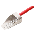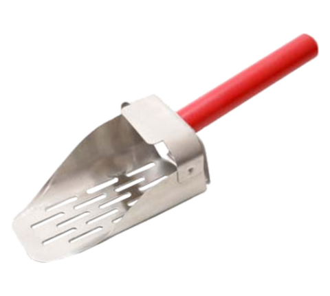 Onion Ring Scoop, 6-1/2" long x 3-1/2" wide x 2-5/8" deep bowl, slotted, contoured and angled, stainless steel with red bakelite handle, Franke #610382