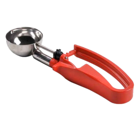 EZ Disher, Zeroll, size 24, stainless steel bowl, left or right-handed use, red handle
