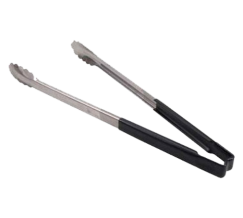 Kool-Touch® Tongs, scalloped paddle, 16", black handle, stainless steel