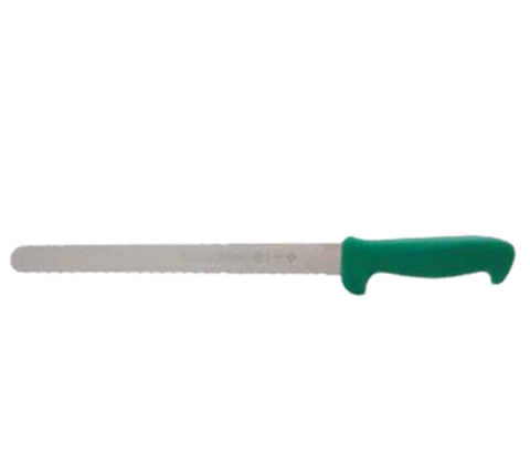 Slicing Knife, 10", serrated, green polypropylene handle, high carbon stainless steel blade, Mundial®