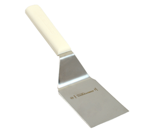 Spatula, bacon turner, 10-1/2" OA L, 4" x 3"W blade, stainless steel blade, polypropylene handle white, NSF