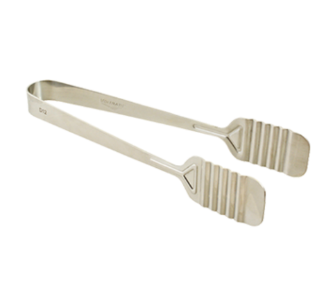 Tongs, 9-1/2"L, flat, ribbed surface, stainless steel