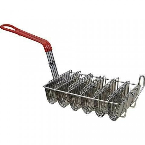 Taco Shell Basket, 12"L x 6"W x 2-3/4" deep basket, 22-1/4" OAL, holds (6) tacos, stainless steel