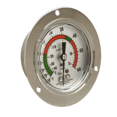 Refrigerator/Freezer Thermometer, 2-1/2" dial, 3-3/4" flange, 48" capillary with 3/8" OD x 2-1/2" long bulb, -40° to 60° F temperature range, can be calibrated, stainless steel housing, NSF