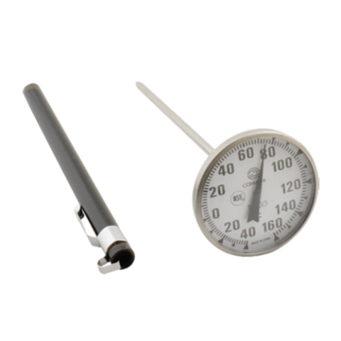 Dial Test Pocket Thermometer, 1-3/4" dial, 5" stem, -40° to 160° F (fahrenheit scale only), can be calibrated, stainless steel with plastic case, NSF