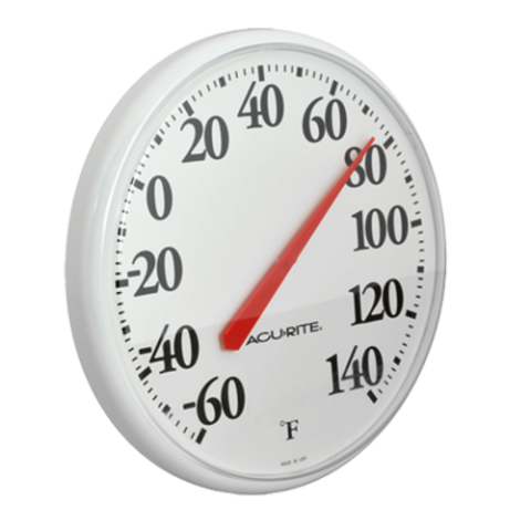 Large Dial Thermometer, 12-1/2" dial, -60° to 140° F temperature range, indoor/outdoor use, ideal for walk-in boxes