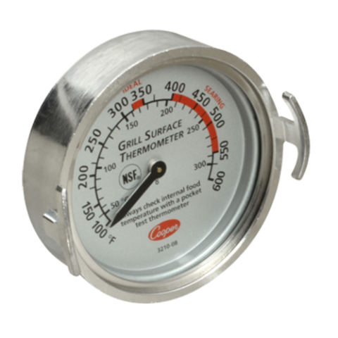 Grill Surface Thermometer, 2-1/2" dial, 100° to 600° F temperature range, stainless steel housing