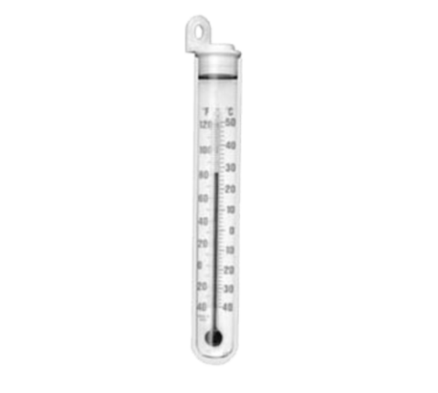 Refrigerator/Freezer Thermometer, 5/8" x 4-5/8", -40° to 120° F temperature range, with top mounting bracket, can be rotated, non-toxic solution, NSF