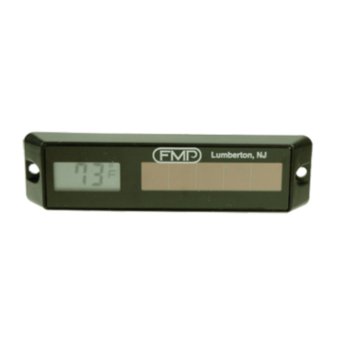 Refrigerator/Freezer Solar Powered Thermometer, digital, type, 4-1/2" x 1-1/8" x 9/16" deep, 3/8" high LCD display, 5 ft. probe lead, -60° to 160° F temperature range, 10 second update, can be calibrated, ABS plastic case, surface mounted, NSF