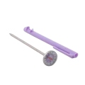 Thermometer, allergen safe, 5" probe, 1" dial, 0° to 220° F (-18° to 104° C) temperature range, storage sleeve with built in recalibration wrench, shatterproof polycarbonate lens, purple, plastic, stainless steel probe, NSF