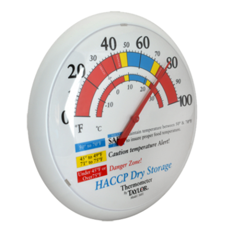 Taylor® Dry Storage Thermometer, wall mount, 13-1/4"OD dial, 0° to 100°F (-18° to 38°C) temperature range