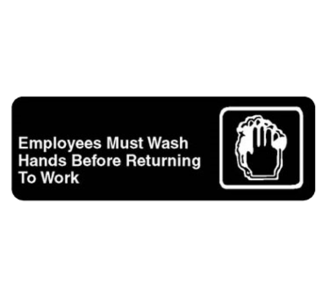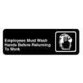 Sign, Employees Must Wash Hands Before Returning to Work, 3" x 9", black with white letters, plastic with adhesive back