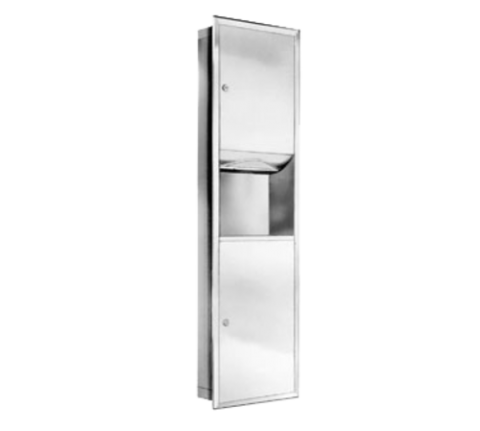 Bradley® Paper Towel Dispenser, 15-5/8" x 4" x 54-1/2" H rough wall opening, recess mounted, for C-fold or multi-fold towels, with removable waste receptacle behind locking hinged door, stainless steel