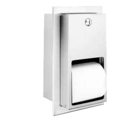 Bradley Reserve Roll Toilet Tissue Dispenser, holds 2 rolls, 5-3/4" x 10-1/2" H rough wall opening, recess mounted, locking hinged door, stainless steel