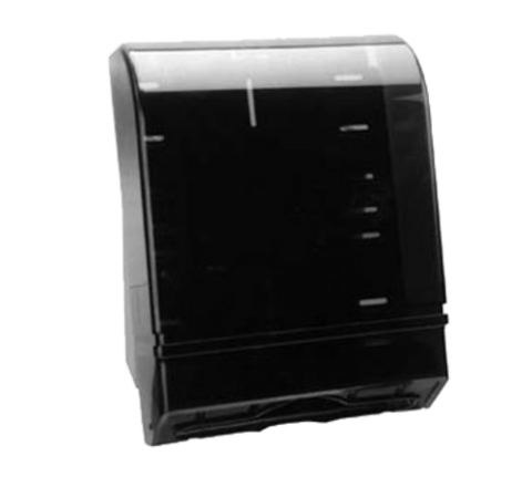 Towel Dispenser, 11-1/4" x 5" x 15-1/4" H, surface mounted, for multi-fold & C-fold paper towels, transparent black front for content level monitoring, 20 gauge steel back, impact resistant plastic front