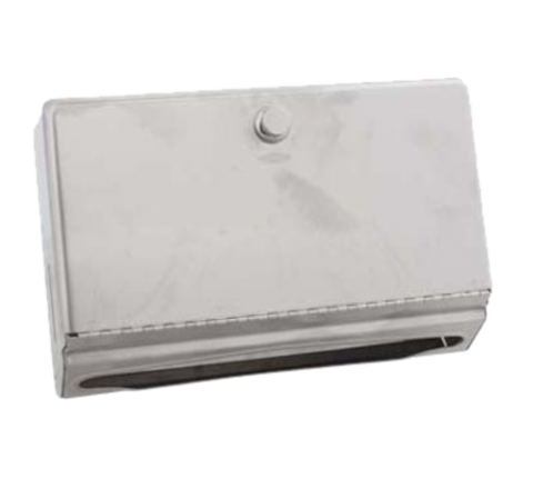 Bobrick® Paper Towel Dispenser, small, 10-3/4"W x 4"D x 7" H, surface mount, knob latch, dispenses 200 C-fold or 275 multifold paper towels, stainless steel with satin finish