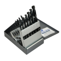 Drill Bit Set, 15 drills, 1/16" to 1/2" by 32nds size range, jobber length, high speed steel, metal storage case
