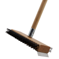 Broiler/Grill Brush, 30" wood handle, dual steel bristles, steel scraper