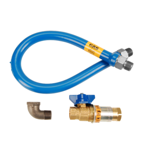 Dormont® Gas Connector Kit, 36"L x 3/4" fittings, includes heavy duty gas hose, safety quick disconnect, street elbow, stainless steel tubing, blue plastic coated hose