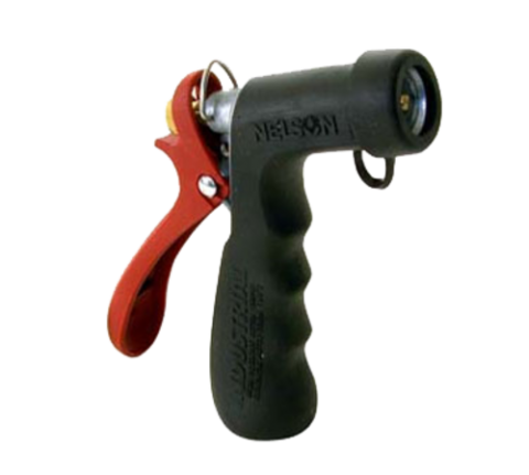 Insulated Wash Down Spray Nozzle, 3/4" male thread on outlet for screwing on chemicals & other containers, insulated handle & grip for hot water applications, 3/4" garden hose inlet, carded for point of purchase sale display