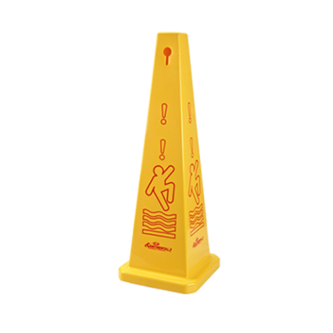 Safety Cone, 35-3/4"H, "Caution Wet Floor" symbol on all 4 sides, plastic, yellow with red outlines