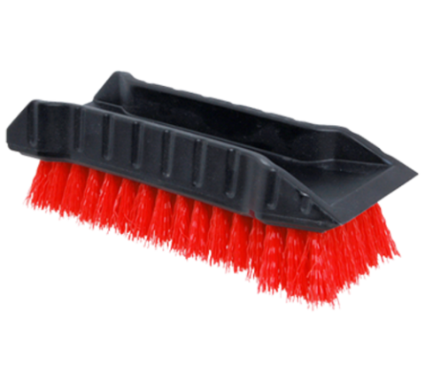Hand Brush, 6-1/2"L, with scraper, plastic, red bristles