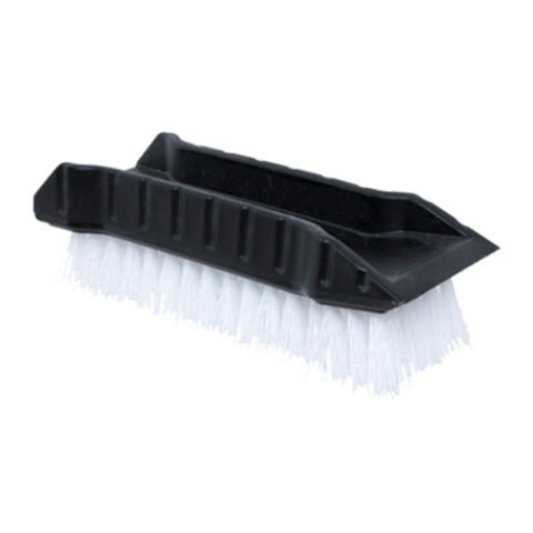 Hand Brush, 6-1/2"L, with scraper, plastic, white bristles