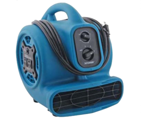 Mini Air Mover / Dryer, 3 hour timer, stackable up to 4 units, built-in cord wrap & power outlet, blue polypropylene housing, 115v