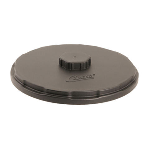 Lid, 9-3/4" OD, with knob, plastic, black, NSF