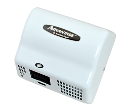 American Dryer® Hand Dryer, 9-3/8" H x 10-1/8"W x 5-5/8"D, surface mounted, NoTouch™ feature, vandal resistant, white epoxy, steel, includes allen wrench, 120/240v, 12.5/6.5 amp, 1400/1250 watt, ADA