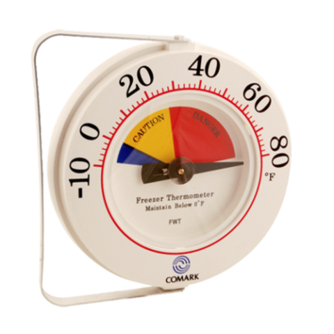 Freezer Thermometer, 6' dia., -10° to 80° F (fahrenheit scale only), clearly defined caution & danger zones