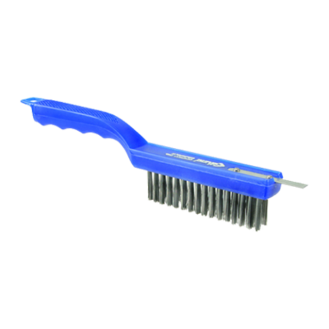 Edlund® #ST-93 Wire Brush, 12", blue plastic handle, stainless steel bristles & scraper