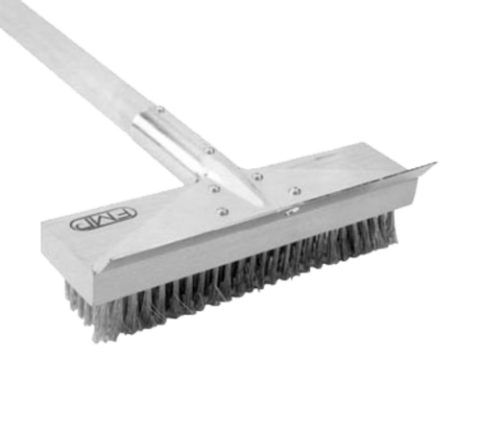 Deluxe Pizza Oven Brush, 42" wood handle, 9-1/4" x 2-1/4" x 7/8" H hardwood block, brass bristles, steel plated scraper