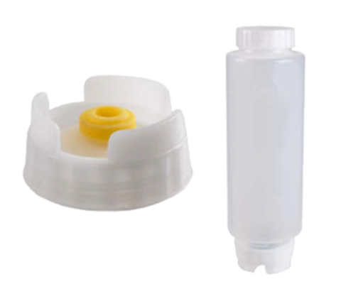 FIFO BOTTLE™, multi-purpose, 16 oz., dispensing cap with medium sized yellow valve, for a wide range of sauces, clear plastic, NSF certified