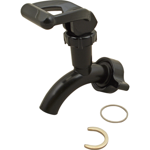 Beverage Dispenser Pinch Faucet, includes wing nut & washers, black plastic
