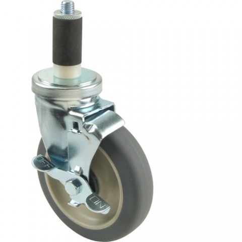 Caster, Stem With Brake 5 x 1-1/4 S, Material: Plastic Hub | Polyurethane Wheel, Width: 3/8" Axle Bolt | 1 1/4" Wheel, Caster Brake: Y, Load Capacity: 1000 Lb Per Set Of 4, Load Height: 6 1/8", Wheel Diameter: 5", Outer Diameter: 1 1/8" Tubing, Caster Type: Stem | Swivel,