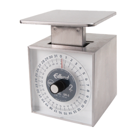 Edlund® Mechanical Scale, 32 oz. capacity, 1/4 oz. increments, 6" x 6-3/4" platform, square, dashpot & dial faceplate, dishwasher safe, stainless steel, NSF