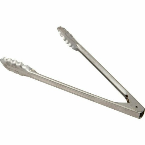 Tongs, 11-3/4", scalloped-edge tip, heavy-duty, stainless steel (12 per pack)