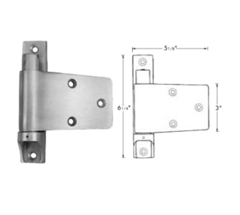 Cam Hinge, flush, left hand, 5-1/8"L x 6-1/4" H x 3" strap, spring assisted, satin aluminum