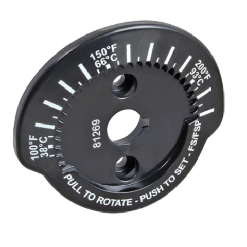 Thermostat Indicator Plate, 100° - 200°F range, black plastic
